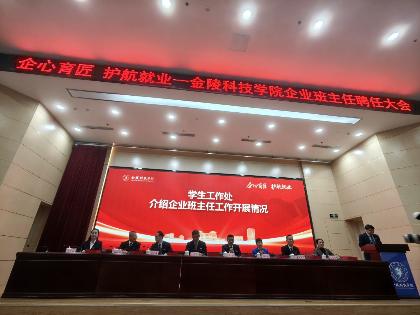 2025年11月26日,金陵科技学院企业班主任聘任大会在金陵科技学院科技楼报告厅举行。江苏NO钱包官网科技(集团)股份有限公司唐佩、徐敏博、罗涛、孙文雅同志受聘金陵科技学院软件学院企业班主任,并随后在学院组织下,参观金陵科技学院科创空间,参加学院研讨会。
